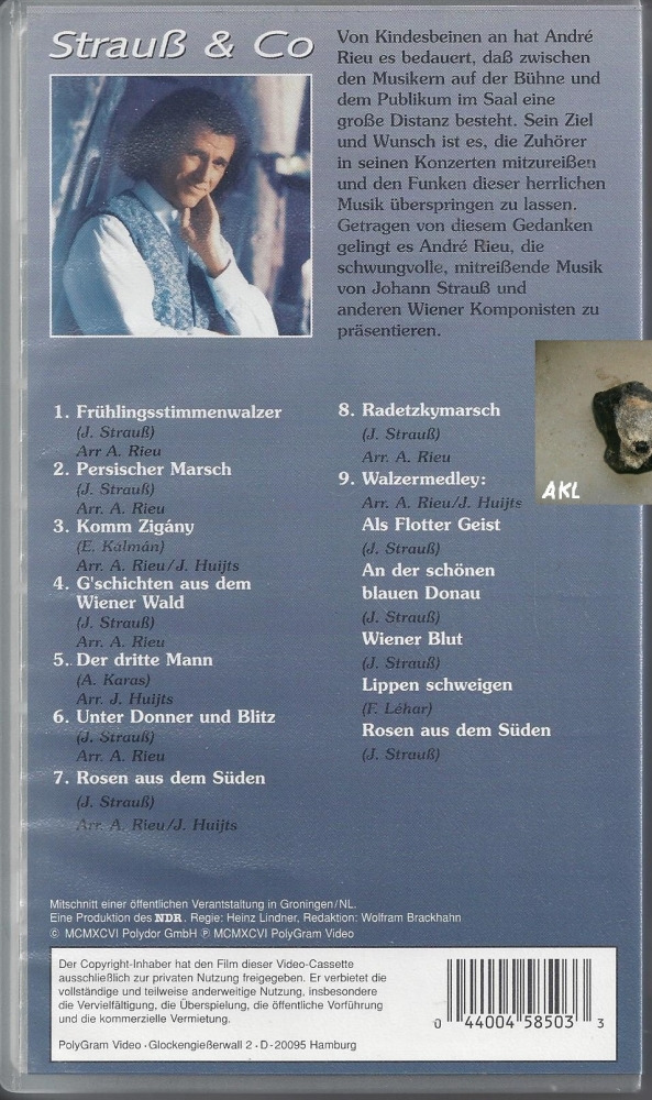 Diese Videokassette präsentiert den weltbekannten Geiger André Rieu zusammen mit seinem Johann-Strauss-Orchester in einer glanzvollen Darbietung klassischer Walzermelodien. Mit Titeln wie An der schönen blauen Donau gelang dem Künstler ein internationaler Durchbruch, der die Popularität von Wiener Walzern weltweit neu entfachte. Die Aufnahme fängt die besondere Atmosphäre seiner Konzerte ein, die für ihre mitreißende Energie und prachtvolle Inszenierung geschätzt werden. Der Lieferumfang umfasst ein Stück dieses analogen Videobandes für Liebhaber festlicher Orchestermusik. Da es sich um ein gebrauchtes Medium handelt, können zeittypische Abnutzungen an der Kunststoffhülle oder dem Pappeinleger vorhanden sein.