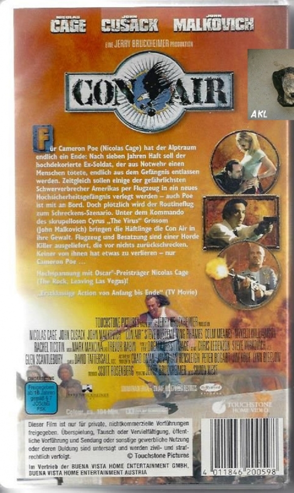 Der Actionfilm Con Air erzählt die Geschichte eines Gefangenentransports, der außer Kontrolle gerät, als mehrere Schwerverbrecher das Flugzeug übernehmen. Der Film verbindet Spannung, Action und dramatische Elemente und folgt dem Versuch eines Insassen, die Situation zu entschärfen und eine Katastrophe zu verhindern. Die VHS bietet den Film in deutscher Fassung und ist für Zuschauer ab 16 Jahren freigegeben.