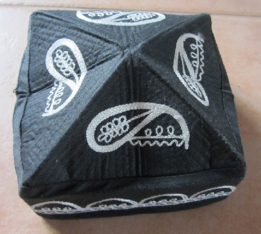 Diese traditionelle Tjubetejka ist eine klassische Kopfbedeckung aus Usbekistan und besticht durch ihre typische quadratische Form sowie die charakteristischen Muster. Die Haube ist ein schönes Beispiel usbekischer Handwerkskunst und dient als authentisches Accessoire für Kulturinteressierte oder Sammler von Volkskunst. Das Textilstück ist ungetragen, kann jedoch aufgrund der Aufbewahrung Lagerspuren aufweisen. Es vermittelt einen direkten Einblick in die orientalische Kleidungskultur Zentralasiens und eignet sich hervorragend als Dekorations- oder Sammlerobjekt.