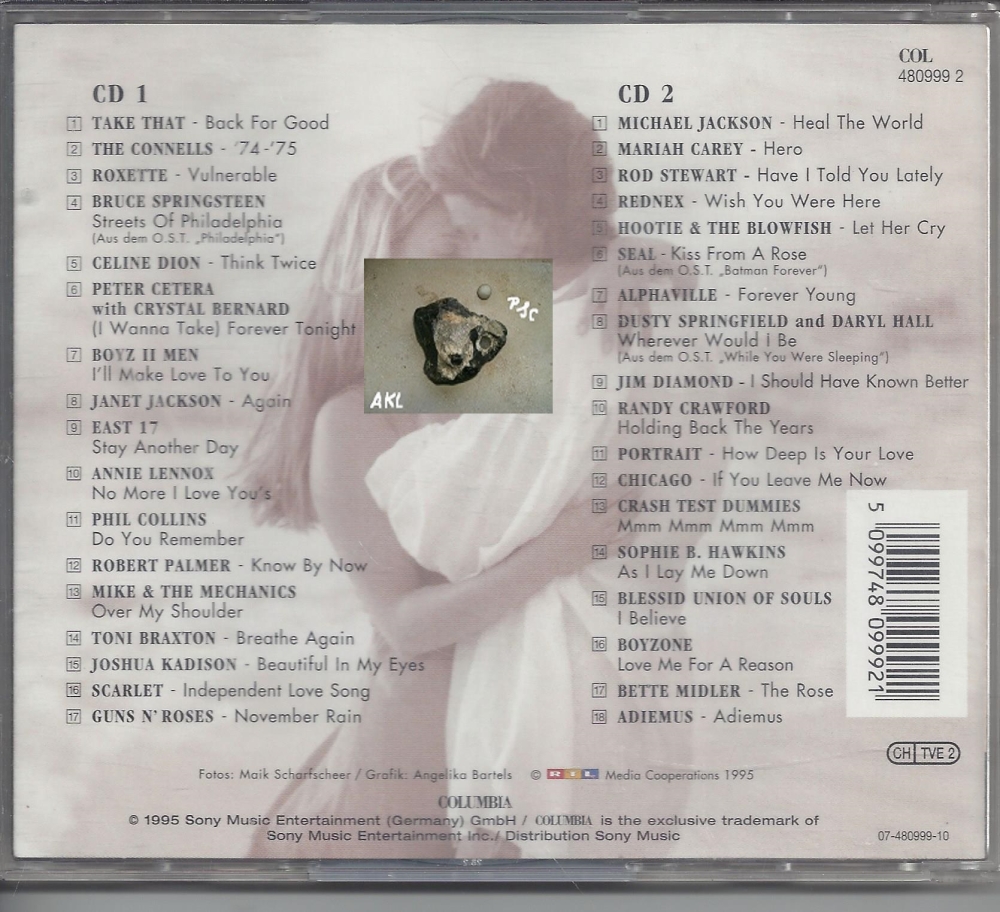 Diese Doppel-CD aus der erfolgreichen Serie präsentiert eine Auswahl der bekanntesten Liebeslieder und Balladen aus der Mitte der 1990er Jahre. Die Zusammenstellung enthält internationale Hits namhafter Künstler, die für eine entspannte und romantische Atmosphäre sorgen. Das Album richtet sich an Liebhaber von Pop-Compilations und Sammler der bekannten Kuschelrock-Reihe. Die Aufnahmen bieten einen repräsentativen Querschnitt durch die damalige Musiklandschaft und dokumentieren die Popkultur dieser Ära. Es können normale Gebrauchs- und Lagerungsspuren vorhanden sein.