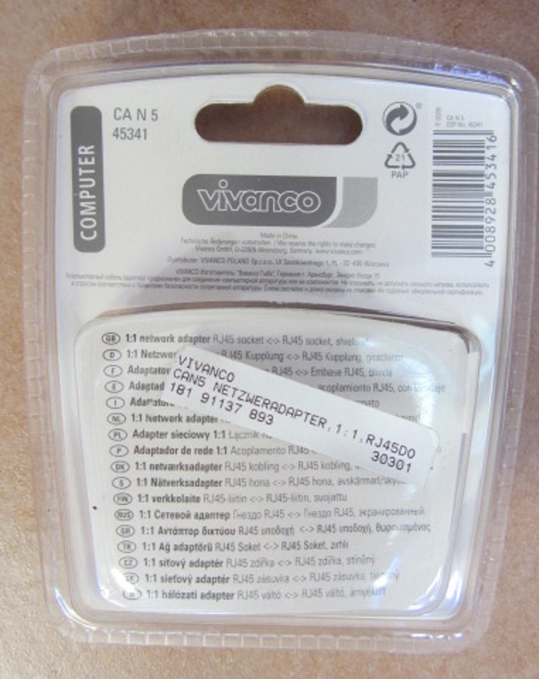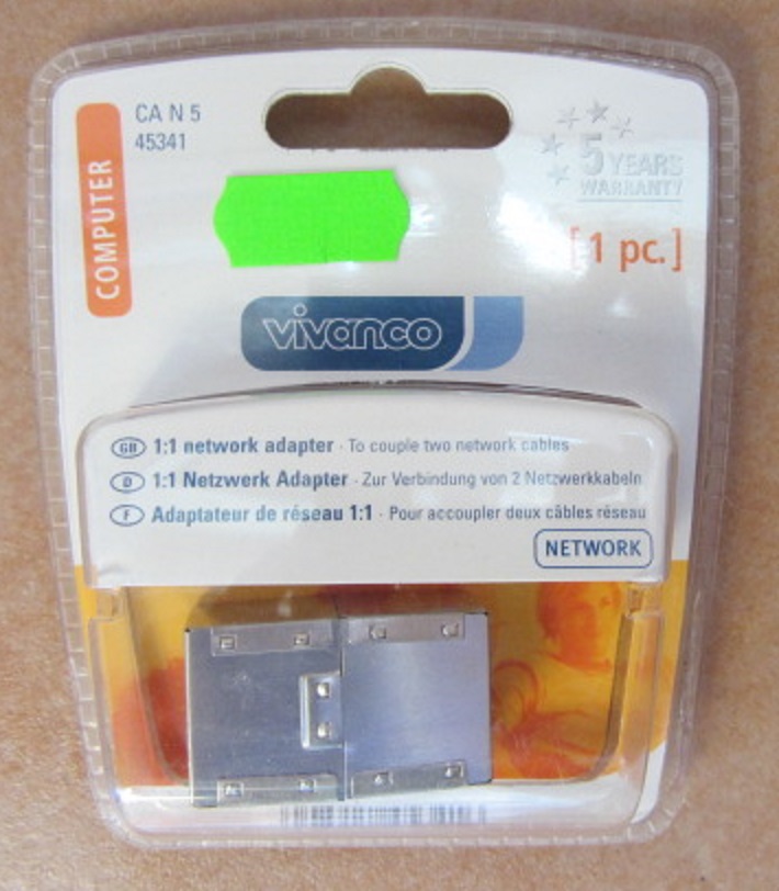 NEU, in Originalschachtel, VIVANCO CAT 5e, Netzwerk 1:1 Adapter